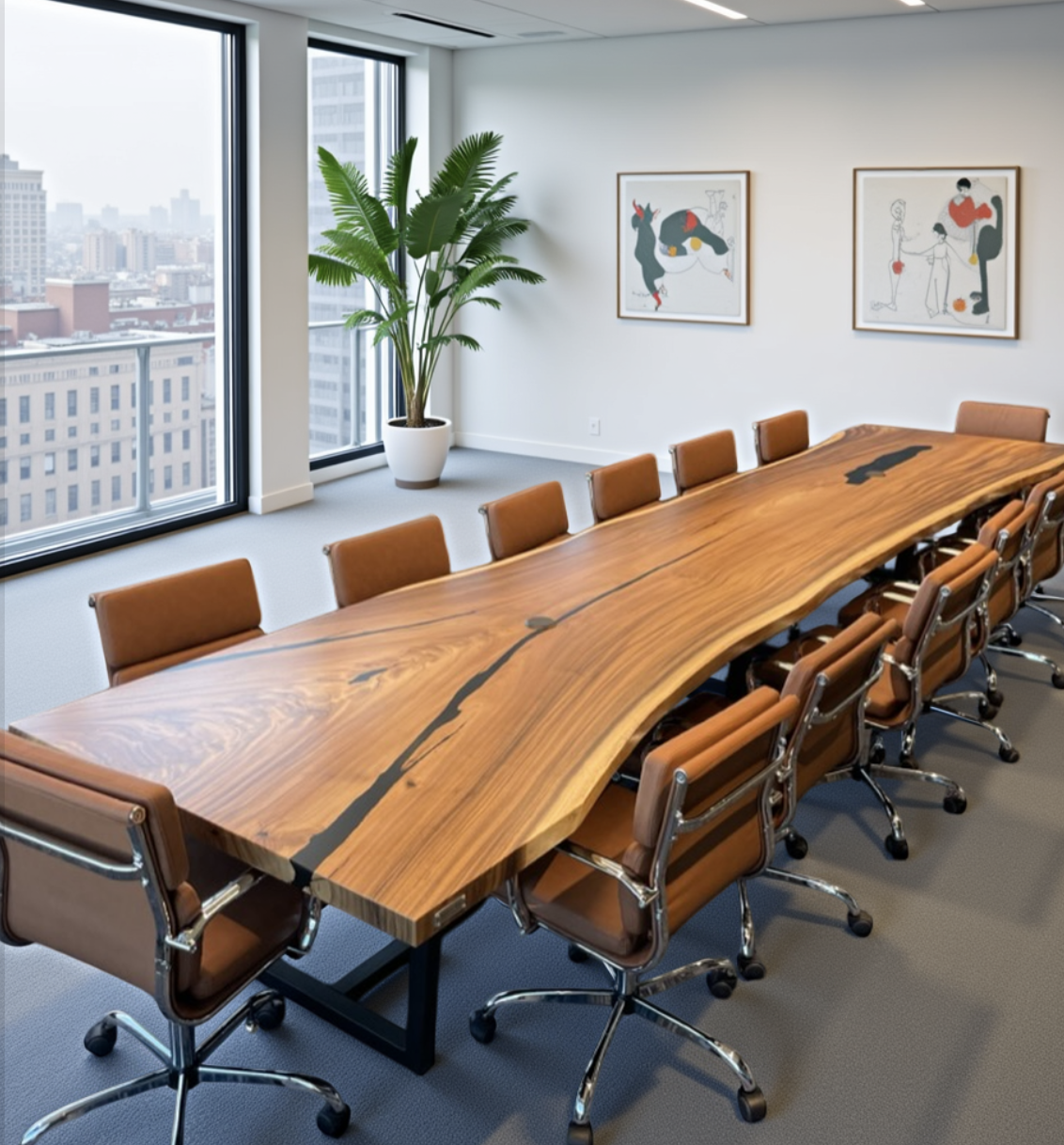 At Bucktown Built, we specialize in large conference tables that make a statement in any workspace. From sleek modern designs to rugged industrial styles and natural live edge slabs, each table is custom-built to fit your company’s vision. We craft tables over 20 feet long, perfect for bringing your entire team together in style. Every piece is handcrafted in Chicago using premium hardwoods and durable finishes designed to last a lifetime. Whether you’re designing a boardroom centerpiece or outfitting a creative workspace, Bucktown Built delivers large, custom conference tables that elevate collaboration and reflect your brand’s identity.
